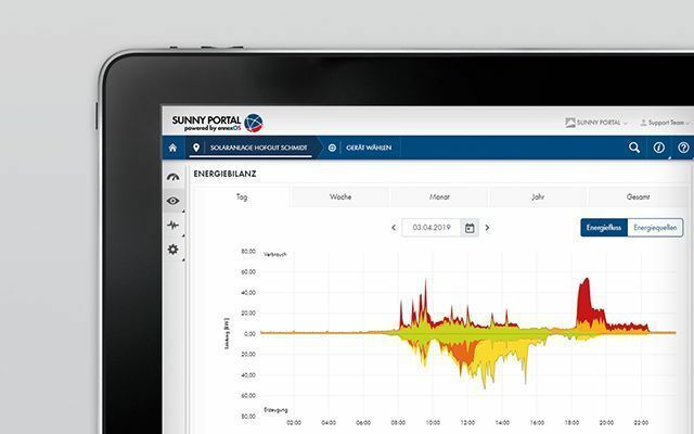 En el portal de monitorización Sunny Portal puede consultar el proceso de carga de su vehículo siempre que lo desee y comprobar así el estado de la carga. Puede ver al detalle si la electricidad en ese momento procede de la red pública o de la planta fotovoltaica y cuánto le cuesta. Además, en Sunny Portal puede vigilar todos sus equipos eléctricos las 24 horas del día. De este modo se consigue la transparencia necesaria para poder detectar los electrodomésticos que más electricidad consumen y eliminarlos.