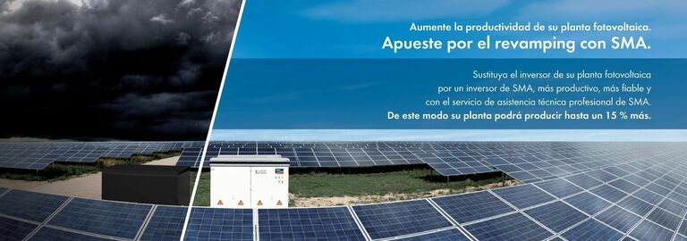 En el sector de la energía solar el término “revamping” o “repowering” designa la modernización de una planta fotovoltaica existente, sustituyendo por ejemplo uno o varios de sus componentes. De este modo puede aumentarse la capacidad de la planta y prolongarse la vida útil de la misma, particularmente en aquellos países con mucho sol y, por ende, con un elevado rendimiento, y que cuentan con numerosas plantas fotovoltaicas que pueden modernizarse para que sean más eficientes. Los operadores de plantas fotovoltaicas pueden beneficiarse del aumento del valor. Realizar el revamping consiste en corregir las limitaciones derivadas del propio diseño anticuado de la planta u otras limitaciones técnicas heredadas de la época en que se instaló. De este modo, los operadores de las plantas fotovoltaicas pueden aprovechar, por ejemplo, las nuevas tecnologías de comunicación o integrar nuevos productos, como p. ej. una memoria externa para preparar las plantas para futuras innovaciones y avances técnicos. Modernizar las plantas fotovoltaicas existentes, además, conlleva menores costes que instalar una nueva planta. Otra ventaja adicional es que, como ya se conocen las particularidades especiales de cada planta, pueden tenerse en consideración durante su modernización.