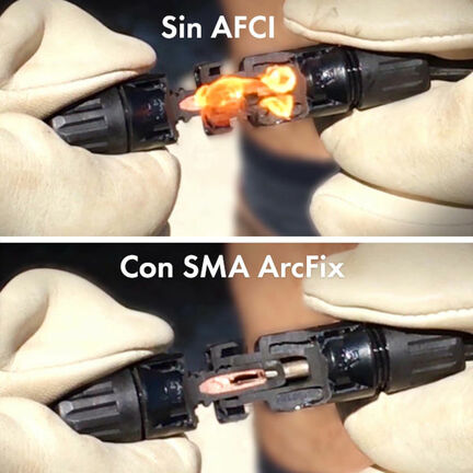 Con la protección contra arco eléctrico o voltaico SMA ArcFix, SMA ha perfeccionado la tecnología Arc Fault Circuit Interrupter (AFCI). Esta función protectora reconoce eficazmente posibles arcos eléctricos e interrumpe el circuito antes de que pueda producirse un incendio. En caso de alarma o error, el sistema se reinicia automáticamente.